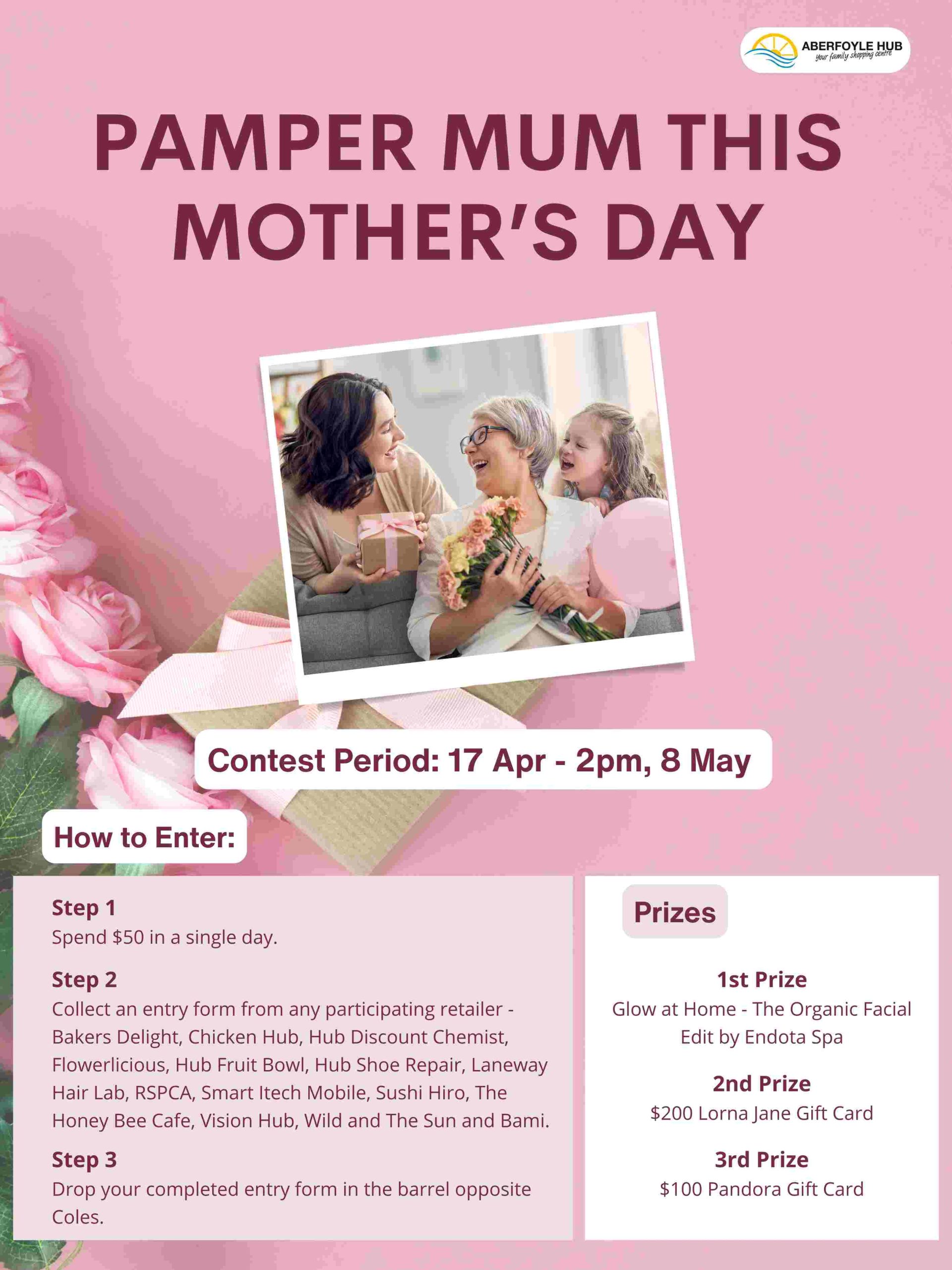 Spend $50 in a single day and be in the run to win amazing prizes for Mum! Pamper Mum this Mother's Day!